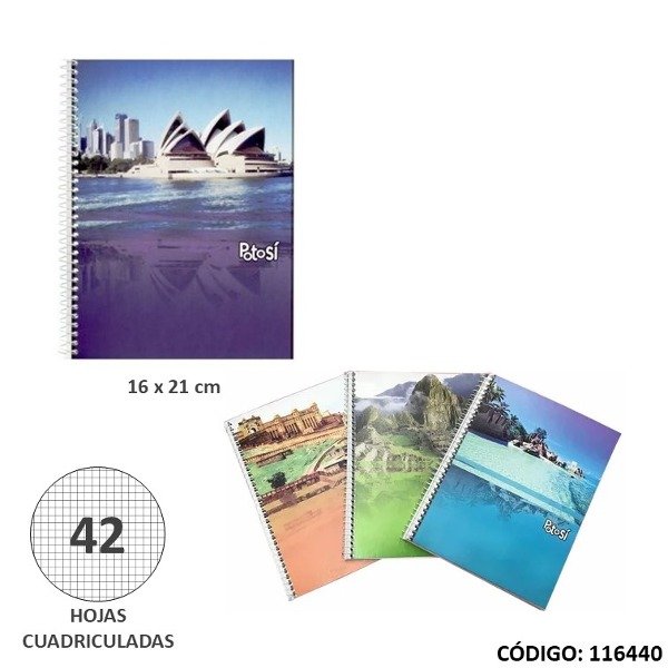 CUADERNILLO TAPA BLANDA 16x21 POTOSI CUADRICULADO X 42 H